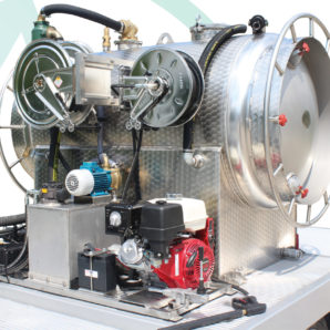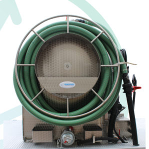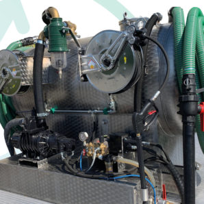L’attrezzatura che produciamo è composta dal gruppo pompe e dal sistema di serbatoio. Una parte del serbatoio, di forma cilindrica, è adibita all’aspirazione del refluo, mentre l’altra parte viene impiegata nel contenimento dell’acqua per lavaggio ad alta pressione e disinfezione dei bagni mobili. I nostri impianti sono quindi a tutti gli effetti dei mini spurgo, dedicati alla pulizia dei bagni chimici.